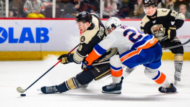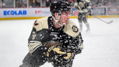 Following that debut, his most recent reassignment to Reading happened to coincide with Hurricane Sandy sweeping through the region. The goaltender weathered the main part of the storm in Hershey, an event quite unlike anything he’d encountered growing up in landlocked Germany. “I was told it wasn’t as bad here in Reading, but it was probably bad in Hershey. I drove up the next day, was kind of risky and windy. [I’d] never experienced that, and it was a little bit fun, like buying flashlights and crackers and drinks and stuff for a power outage. Luckily, nobody got bad weather down here.”