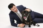 Tom Wilson tried a number of poses and props for his photo shoot for the dog calendar. The dog, Chad, was a rescue from Hurricane Harvey, and is up for adoption.