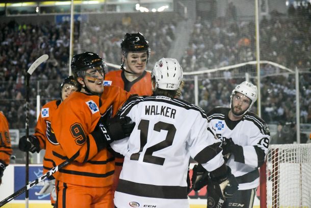 A great atmosphere as over 13,000 people joined the live event at Hersheypark Stadium.  To add to the specialness of everything, it happened to also be Chris Bourque‘s 700th AHL game.