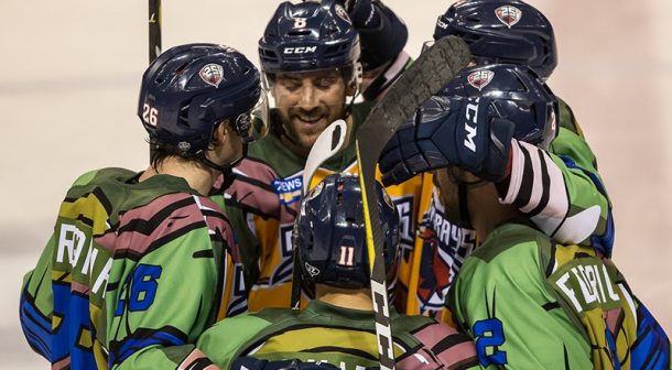 Saturday, the Stingrays’ offense came alive for five goals. Parker Milner stopped 45 shots in the win. Four Stingrays had multi-point nights. McGauley and Paul Geiger also had a goal and an assist, while Steven Whitney added two assists. Captain Joe Devin had a goal and assist to set a new career high in points for a season with 43.