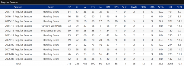 Bourque finishes as a Hershey Bear with 586 points (5th in franchise history) and playing the fifth most games while wearing chocolate and white. Chris had 196 goals (7th in franchise history) and 390 assists (3rd in franchise history).