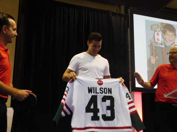 At the event, Wilson met Brock, who is a patient ambassador for SickKids, a renowned children’s hospital in Toronto. Brock was a hockey player when one day is mom said he looked thin. He went to the doctor hoping all he needed was some protein shakes. Instead, he was diagnosed with liver cancer and would need a transplant at the young age of 11. Brock, now 12, is healthy and is looking to return to the ice. Brock would get a special jersey from Wilson that he would later autograph.