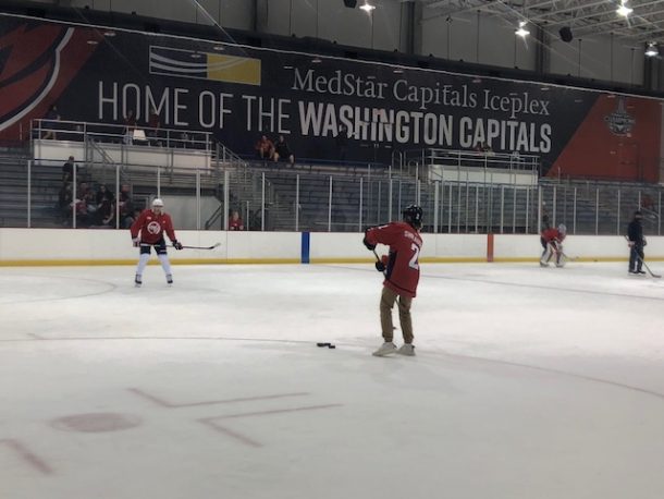 This morning, we visited the Washington Capitals at their first morning skate of the season at Medstar Capitals Iceplex in Arlington VA. The place was packed with happy fans who displayed their excitement for the start of the 2018-2019 hockey season. There, we were able to see backup goalie Pheonix Copley who was very focused listening to the goaltending coach, Scott Murray. This is the second season of coach Murray as the Capital’s goaltending coach, as he had spent the previous four seasons with the Hershey Bears. Coach Murray did an excellent job with Branden Holtby and Philipp Grubauer last season. Grubauer finished with a 15-7-2, a 1.99 goals against average and a .935 save percentage.  Copley, who was only able to play one game last season, is the only backup goalie with NHL experience that the Washington Capitals have at the moment.