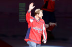 Max Scherzer drops a baseball, instead of a puck, at the Caps game Thursday.
