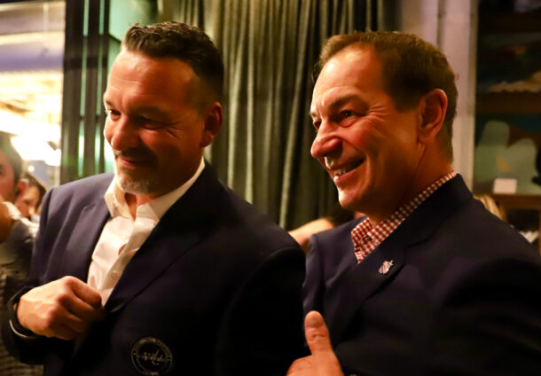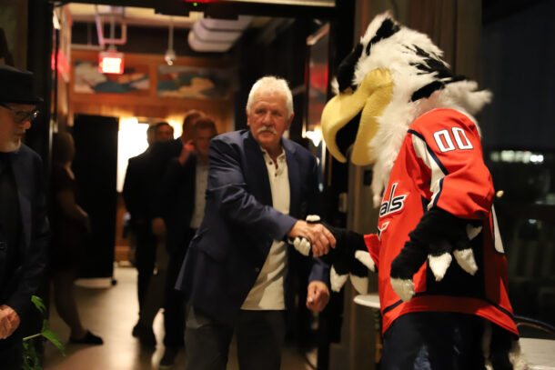 Alumni members there included Karl Alzner, Peter Bondra, Sergei Gonchar, Alan Hangsleben, Brent Johnson, Dmitri Khristich, Olie Kolzig, Nick Kypreos, Yvon Labre, Craig Laughlin, Dennis Maruk, Alan May, Kelly Miller, Paul Mulvey, Andrei Nikolishin, Steve Oleksy, Errol Rausse, Bill Riley, Ken Sabourin and Richard Zednik. Rod Langway was supposed to be there but couldn’t make it. Bondra said that someone told him he had jury duty, which is obviously false because no one has jury duty on a Friday night. Bondra also said Ovi was coming so I think he had too much wine.