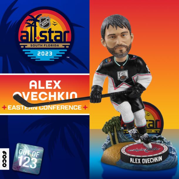 This season, we’ve seen quite a few new Alex Ovechkin bobbleheads from FOCO, and here is yet another, this time in an All Star uniform. This weekend in Sunrise, Florida, Ovi is participating in his eighth All Star game, and we believe this is the first time a bobblehead has been made to commemorate his All Star-worthiness. Only 123 of these are being made and sure to sell out quickly.