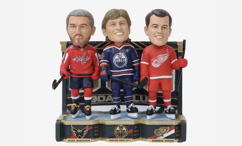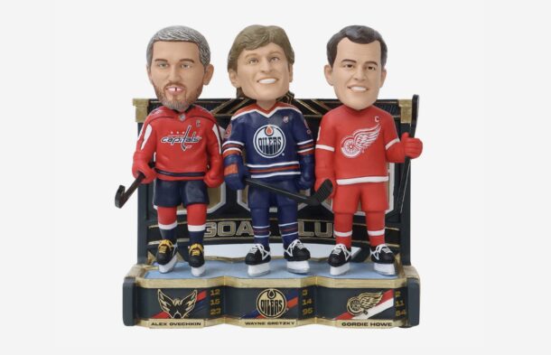 The 800 Goal Club is getting a bobblehead. Our friends at FOCO are releasing an Alex Ovechkin, Wayne Gretzky and Gordie Howe bobblehead.