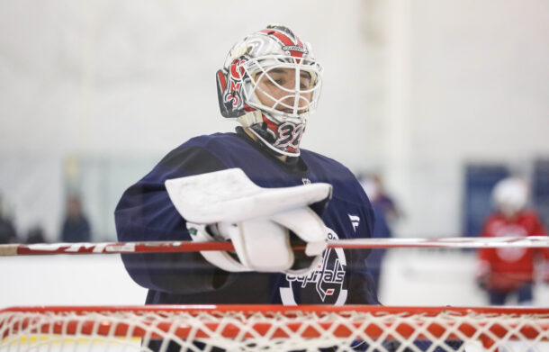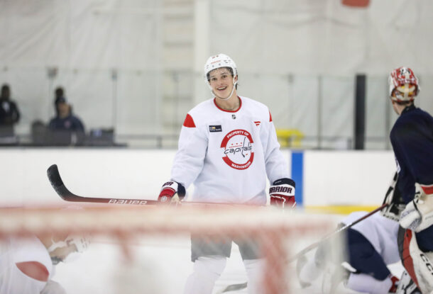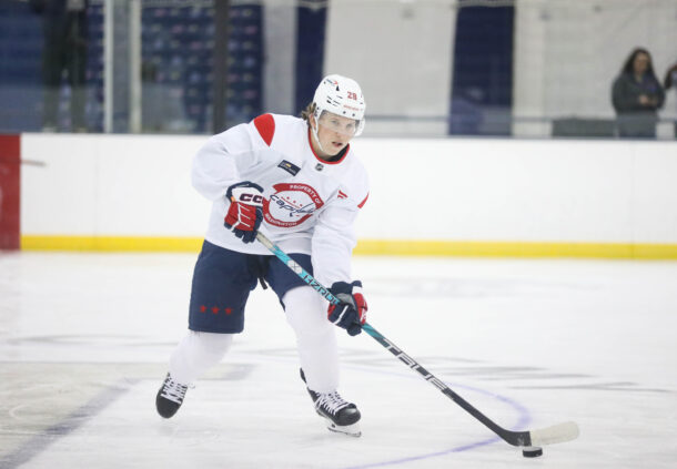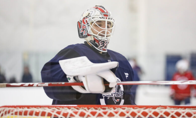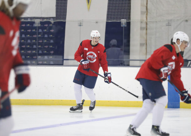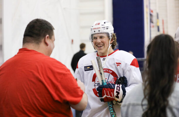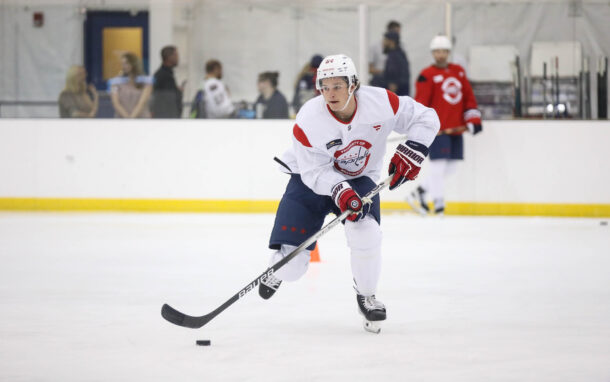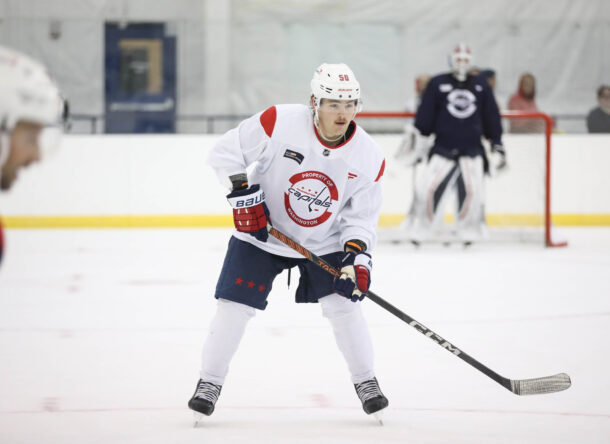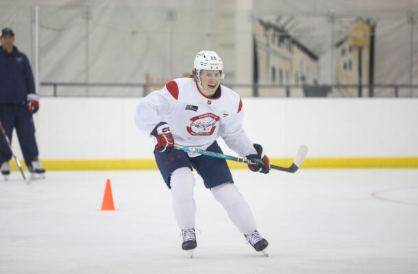 Leon Muggli, a 17-year-old defenseman, interacts with fans after the Caps Rookie Camp.Andrew Cristall signs memorabilia for fans after the Caps Rookie Camp.Cam Allen smiles after taking a shot at the end of the Caps Rookie Camp.Tyler Weiss stick handles around fellow rookie Jeremy Davidson at the Caps Rookie Camp.Oasiz Wiesblatt, a free agent, sets up to shoot the puck at the Caps Rookie Camp.Seth Eisele, who signed an ECHL contract with South Carolina for the 2024-25 season, sets up the net for shooting practice at the Caps Rookie Camp.Colin MacKenzie smiles and sets up for shooting practice at the Caps Rookie CampPatrick Thomas, a center drafted by Washington in the fourth round, skates in drills at the Camps Rookie Camp on Sept. 16, 2024.Goalie Garin Bjorklund sets up for a glove save at the Caps Rookie Camp.Defenseman Cam Allen skates with the puck at the Caps Rookie Camp on Sept. 16, 2024.Jeremy Davidson, a left wing from Michigan State, practices skating drills at the Caps Rookie Camp.Andrew Cristall laughs during drills at the Caps Rookie Camp.Tyler Weiss, who signed a contract with the Bears for the 2024-25 season, looks to pass during Caps Rookie Camp.Andrew Cristall, drafted by the Caps 179th overall in 2023, stick handles at the Caps Rookie Camp.Left wing Ilya Protas laughs with his teammates during a skating exercise at the Caps Rookie Camp.Capitals Stanley Cup Champion Braden Holtby skates by rookie players at the Caps Rookie Camp.Goalie Colin MacKenzie shifts to make a save at the Caps Rookie Camp.