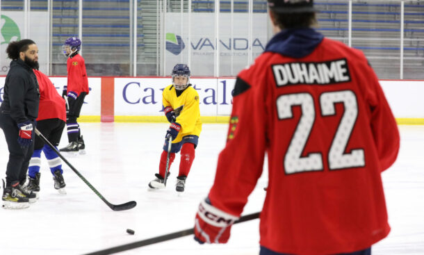 The young players skated with Washington’s Declan Chisholm, Brandon Duhaime, Ryan Leonard, Justin Sourdif and Trevor van Riemsdyk. Academy lead instructor Bryan King and guest lead instructor Kush Sidhu coached students through development sessions.